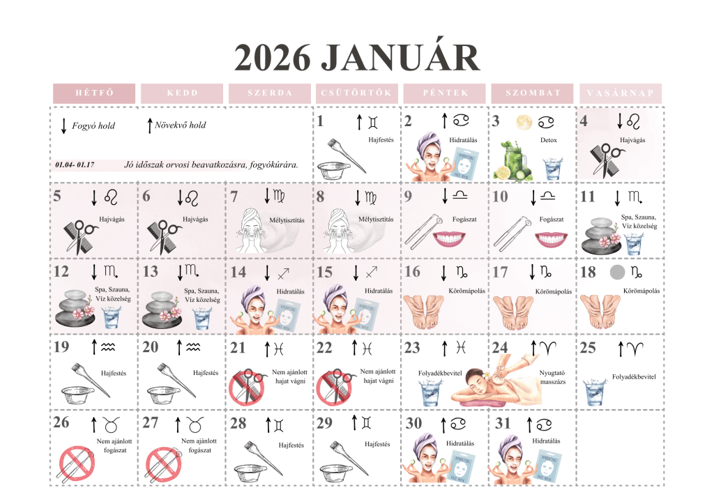 Jogi nyilatkozat: Az itt közölt információk nem minősülnek orvosi tanácsnak. A holdnaptár kizárólag szórakoztatási és tájékoztató jelleggel készült. Egészségügyi kérdésekben minden esetben fordulj képzett egészségügyi szakemberhez.